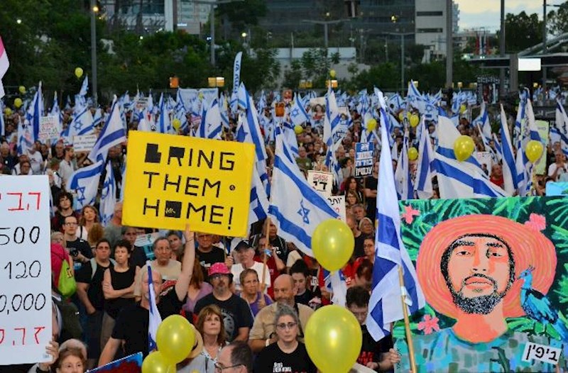 İsrailin Tel-Əviv şəhərində müharibənin başa çatdırılması və Qəzzada saxlanılan bütün israilli əsirlərin azad edilməsi tələbi ilə nümayiş keçirilib.