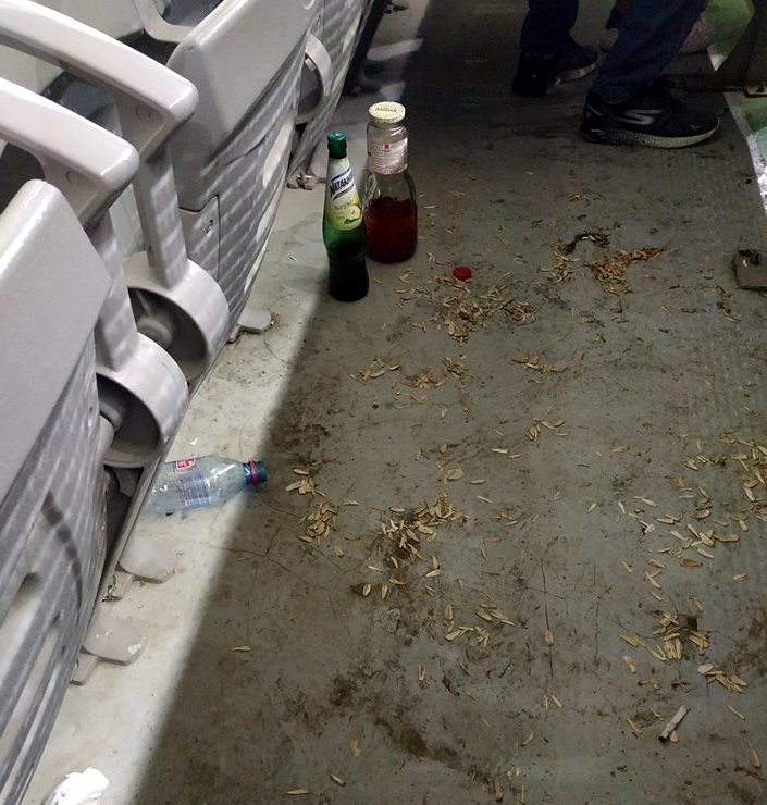 Mənə maraqlıdır ki, stadiona daxil olarkən polislər azarkeşlərin əlindəki plastik su qablarının qapağını müsadirə edirdilər. Səbəb odur ki, qapaqlı qabı stadiona fırlatmaq daha asandır. Amma mənim yanımdakı azarkeşin masasında nəinki plastik qab, bir litrlik şüşə kompot bankası, şüşə qazlı içki butulkası vardı. Azarkeş oyun müddətində bunları içdikdən sonra oradaca buraxıb yerini tərk etdi.