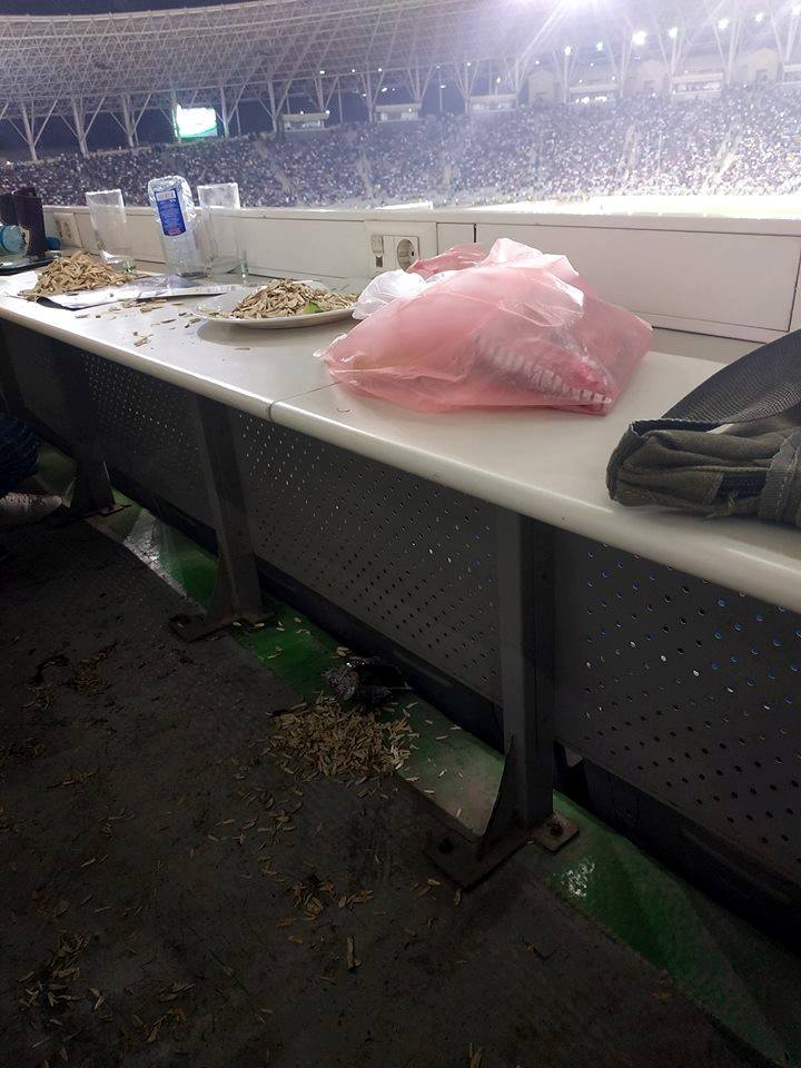 Oyun müddətində bu şəxs kabab yedi, salat yedi, tum çırtladı, kompot içdi, qazlı şirə içdi və sair. Ortalığı isə bərbad halda saxlayıb getdi.
