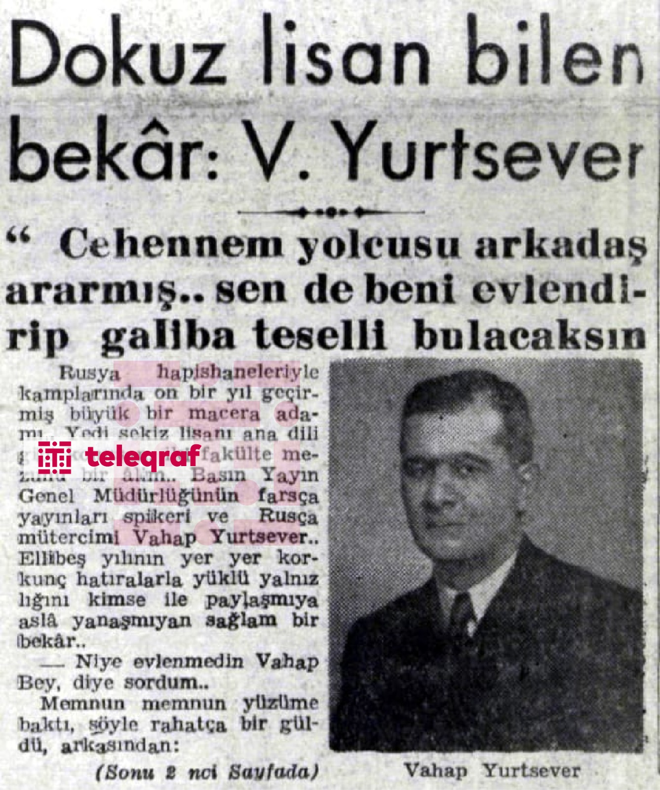 Azərbaycan Cümhuriyyətinin işğalından sonrakı dövrlərdə mühacirətə gedən tanınmış ictimai-siyasi xadimlərin Türkiyə mətbuatına verdiyi müsahibələrdən bəzilərini öncəki yazılarımızda təqdim etmişdik. Əhməd Ağaoğlu, Sürəyya Ağaoğlu, Əhməd Cəfəroğlu kimi şəxslərin müsahibələri onların həyatı haqqında maraqlı məlumatlar verib. Türkiyə mətbuatını araşdırarkən bu dəfə mühacirətdə Azərbaycan Milli Mərkəzinin sədri olmuş Əbdülvahab Yurdsevərin müsahibəsinə rastladıq. Türk jurnalist Fikrət Obay “Nə üçün evlənmirlər?” rubrikası üçün Əbdülvahab bəylə də söhbətləşib. Müsahibə “Yeni Ulus” qəzetinin 23 fevral 1954-cü il tarixli sayında işıq üzü görüb.